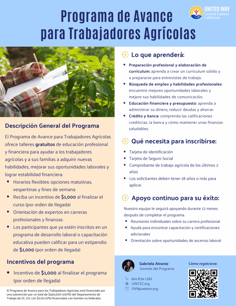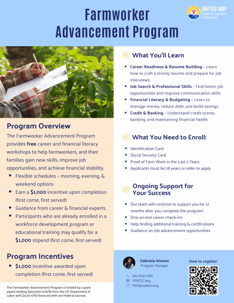 This innovative program aims to provide employment based training and educational opportunities to farmworkers and their immediate family members by partnering with local trade union and workforce development partners.